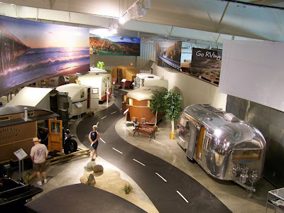 We're camping in Granger, Indiana, near a lot of RV-related industry. We decided that we, as RV owners, would find interesting bits of history in the RV museum that's part of the RV/MH Hall of Fame in Elkhart. We weren't disappointed. Our favorite part is the RV Founders Hall, which contains trailers and other items going back as far as the 1920s.